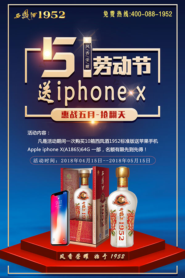 西鳳酒1952丨五一答謝客戶,買西鳳酒1952標(biāo)準(zhǔn)版,送蘋果X手機(jī)一部!